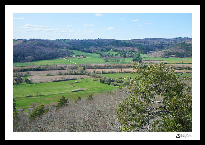 Vous êtes dans le Périgord Noir, domaine de la forêt intrigante peuplée d’histoires étranges, de loups, de rebelles et de brigands. Ses forêts de châtaigniers, de pins et de chênes aux troncs noirs offrent le fond de tableau de ce paysage mystérieux. Mais c’est aussi un monde de hautes collines massives et de falaises majestueuses au calcaire jaune, ocre ou doré. Dans les combes, l’agriculture constitue un système cultural complexe, consacré au tabac, au maïs, à l’élevage bovin ou à celui des canards. La beauté des paysages est enrichie et conservée par la marque des maisons paysannes, très bien entretenues. Ici le temps se fige et se raconte.