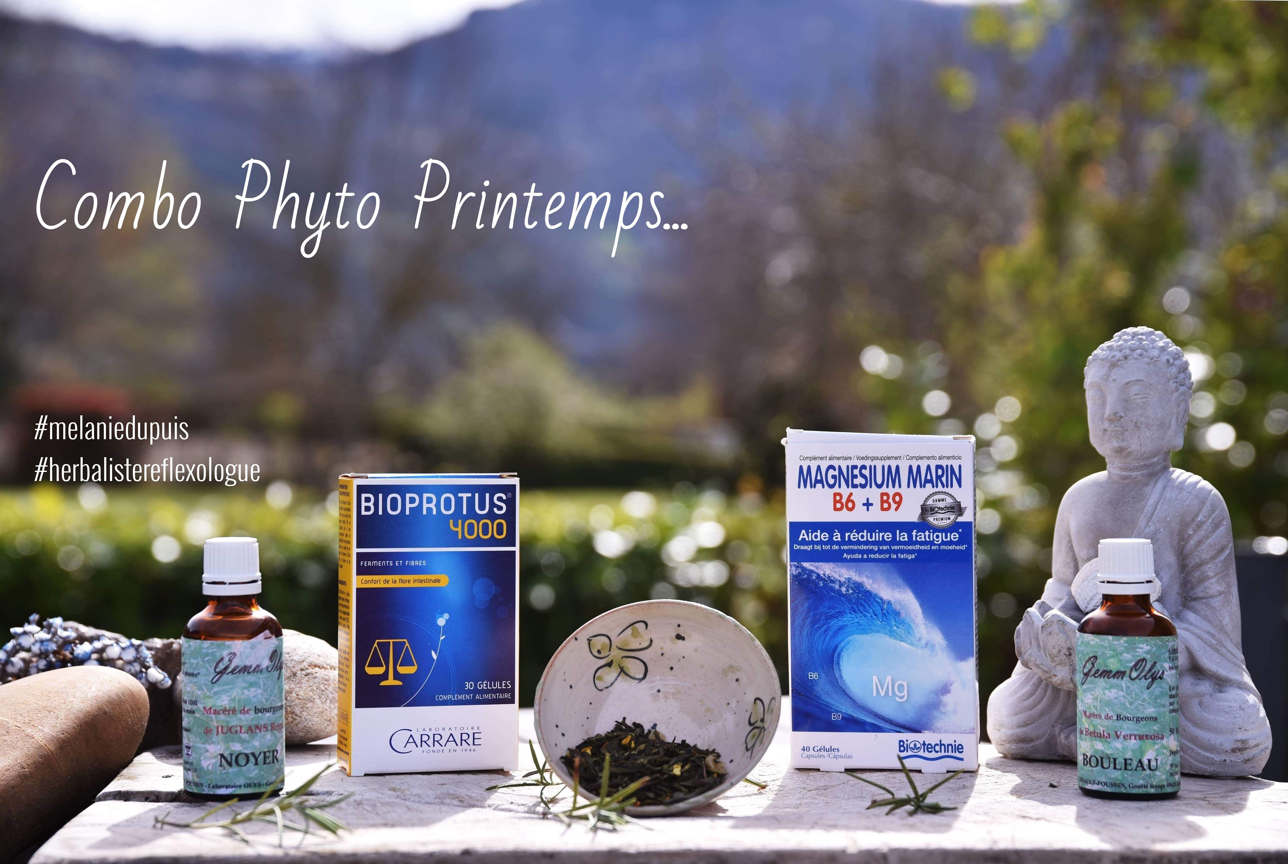 COMBO PHYTO PRINTEMPS: ✨ Du bourgeon de noyer (prébiotique entre autres) et des probiotiques pour donner un coup de pouce à notre précieuse flore intestinale ✨ Du bourgeon de bouleau en tant que reminéralisant et draineur doux de l’organisme et protecteur du foie, du pancréas ✨ Du magnésium pour recharger nos batteries ✨ Du thé vert drainant & antioxydant et du romarin, allié de notre foie! (lire l’article qui lui est consacré sur GC! 😉 👣 En ce moment, pendant vos séances de réflexologie plantaire, en mtc, je travaille notamment sur les zr du foie / vésicule biliaire et selon vos sensibilités aux saisons: reins / vessie (hiver) et/ou rate / estomac-pancreas (inter saison).